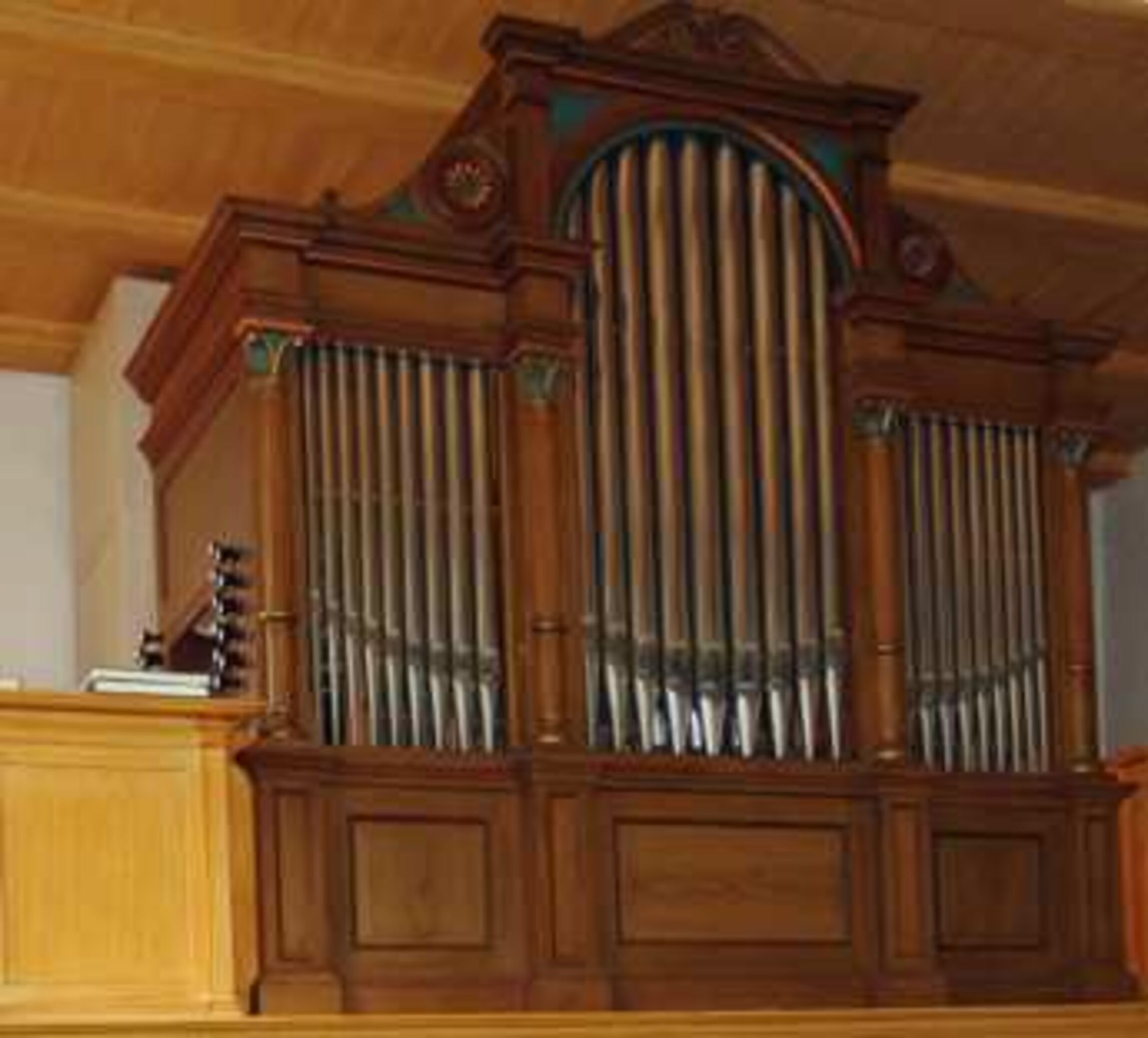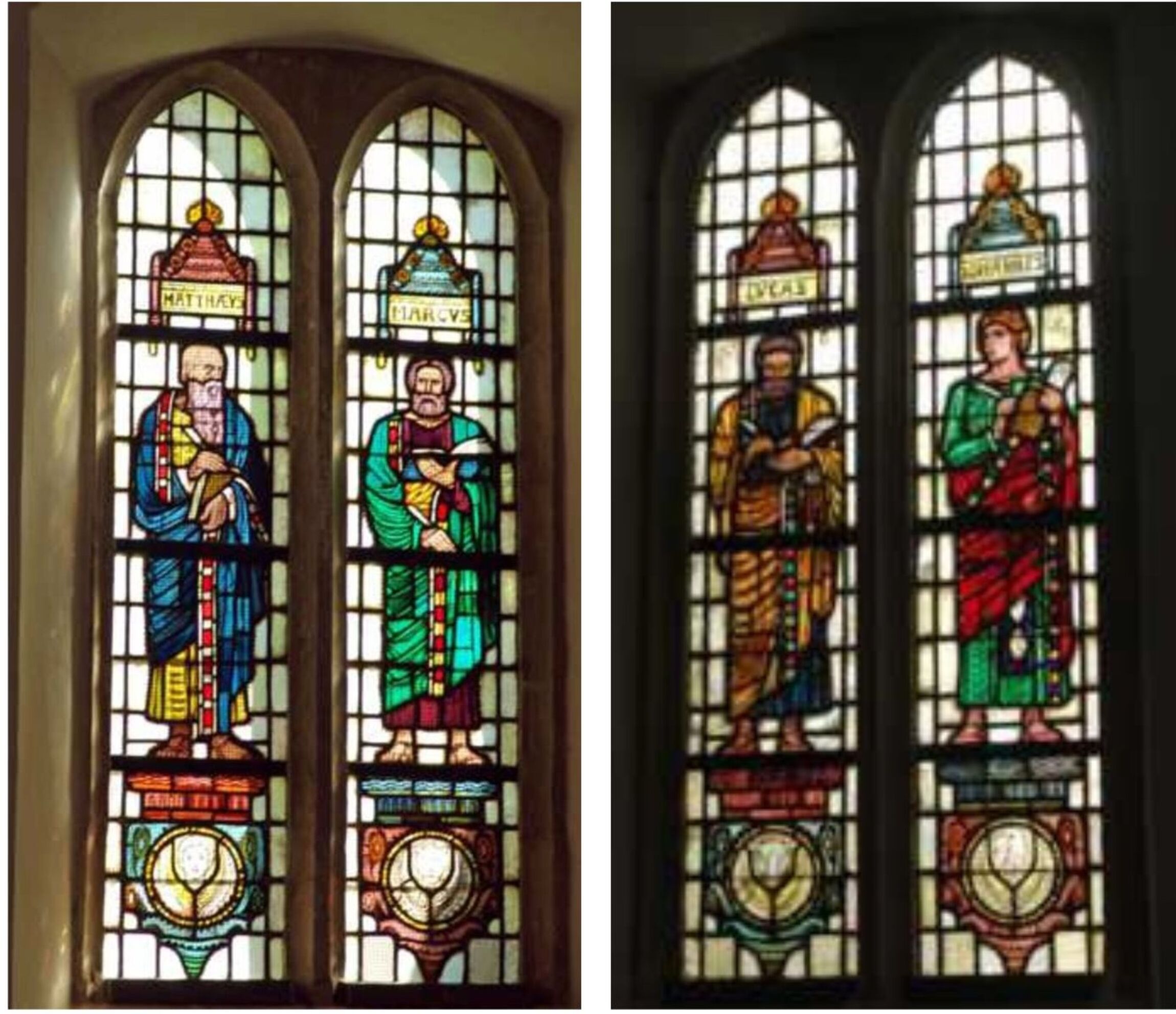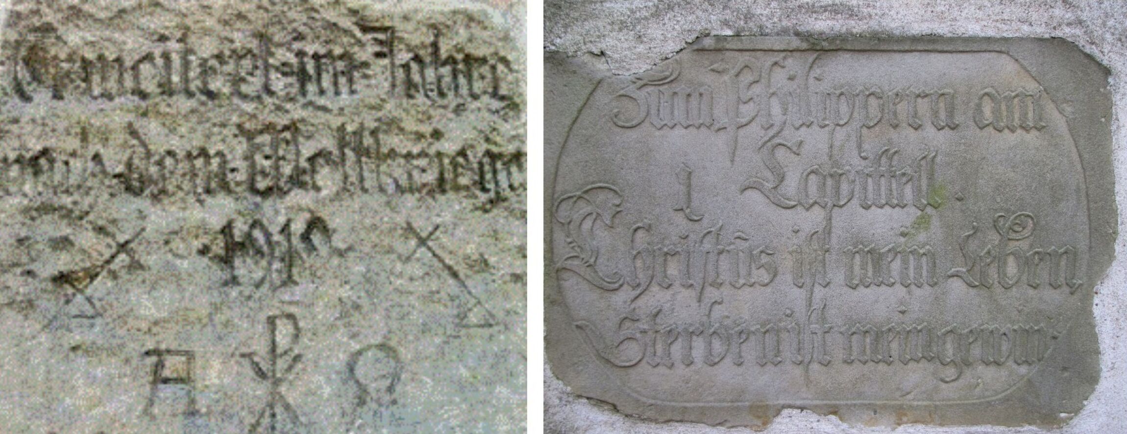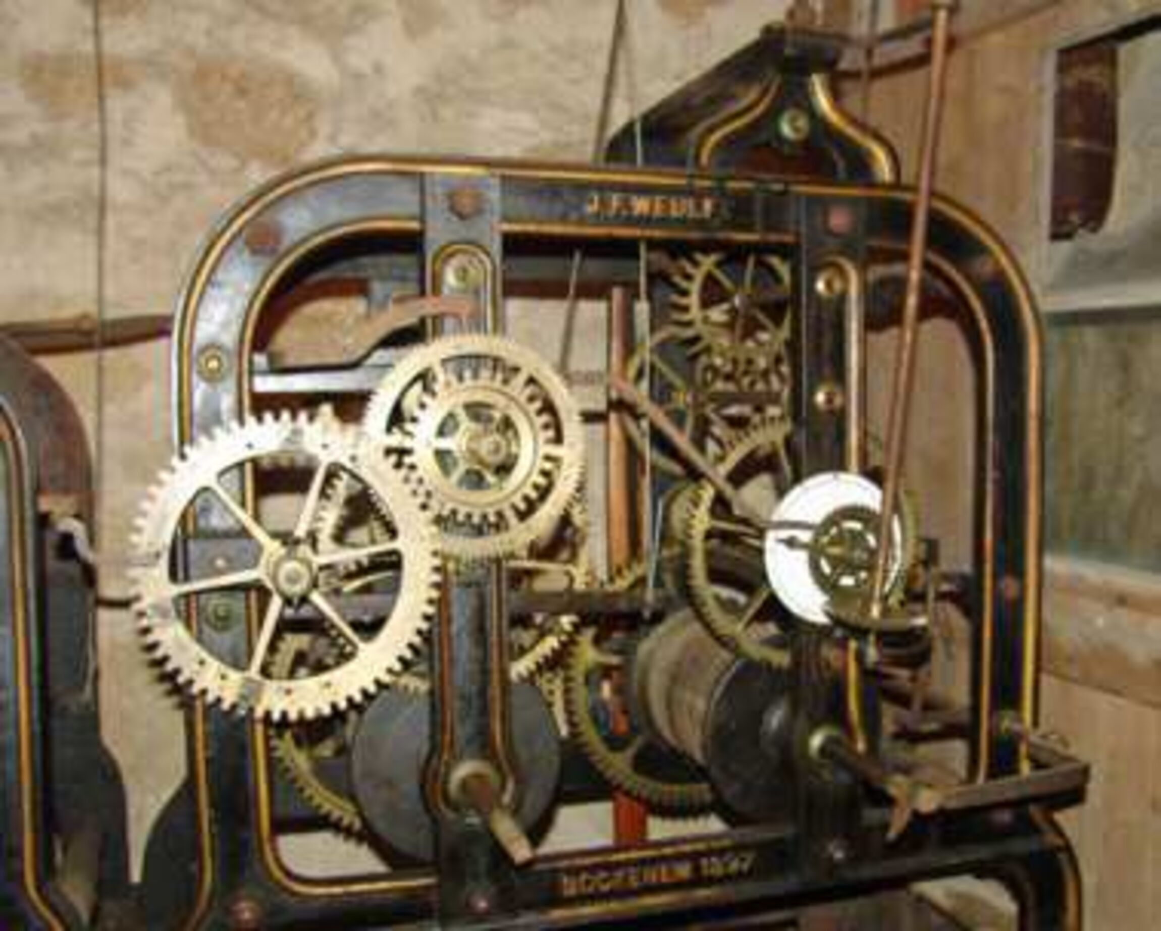 Was wir jetzt sehen: eine Stahlglocke des Bochumer Vereins für Bergbau und Gußstahlfabriken (BVG) mit einem Durchmesser von 111cm, Gewicht 850 kg, Ton g‘, und eine Klanggusglocke aus Eisen der Firma J.F. Weule, Bockenem, mit einem Durchmesser von 126 cm, Gewicht ~825 kg, Ton as, beide aus dem Jahr 1919.