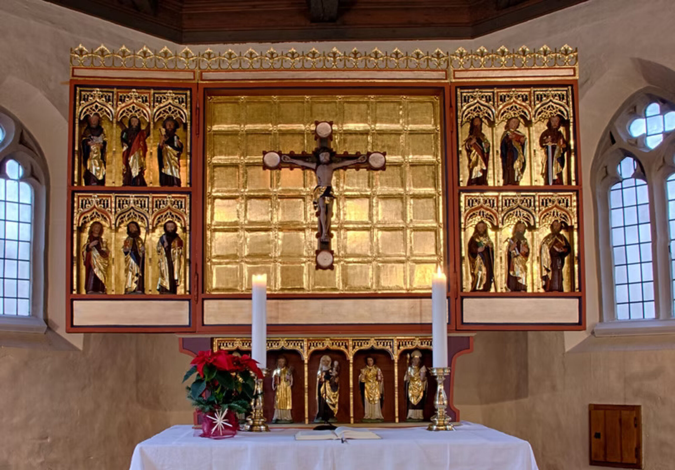 Für die damalige Bauweise typisch ist der dicke Turm und das direkt daran anschließende, ebenso breite Kirchenschiff. Der Chorraum wurde 1475 angebaut und mit gotischen Spitzbogenfenstern ausgestattet. Ein weiterer Umbau im Jahr 1665 verlegte den Eingang von der Süd- auf die Nord-Seite und ließ etwas Barock-Stil in den Bau einfließen. 1825 wurde die Kirche renoviert.